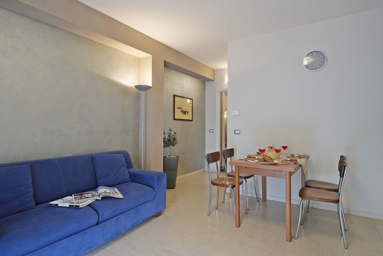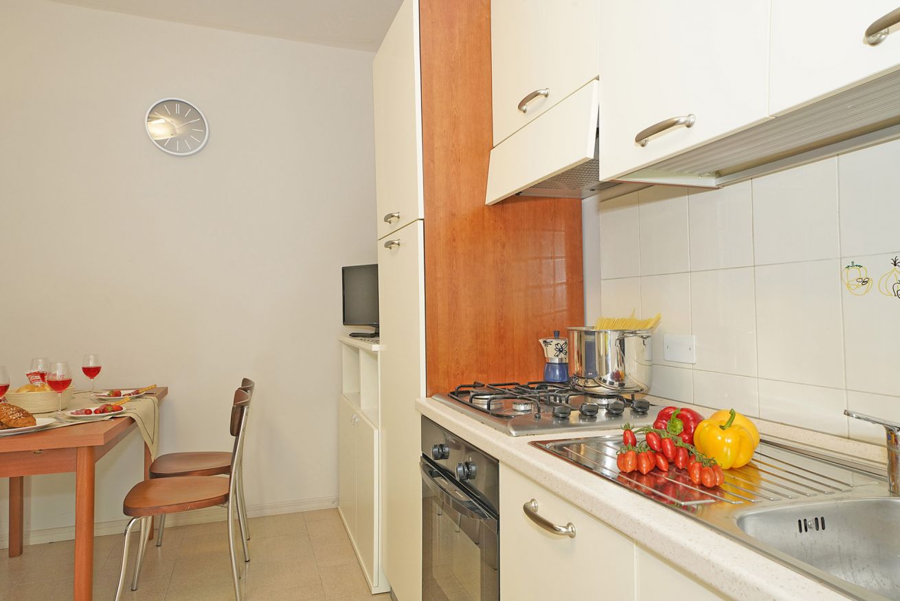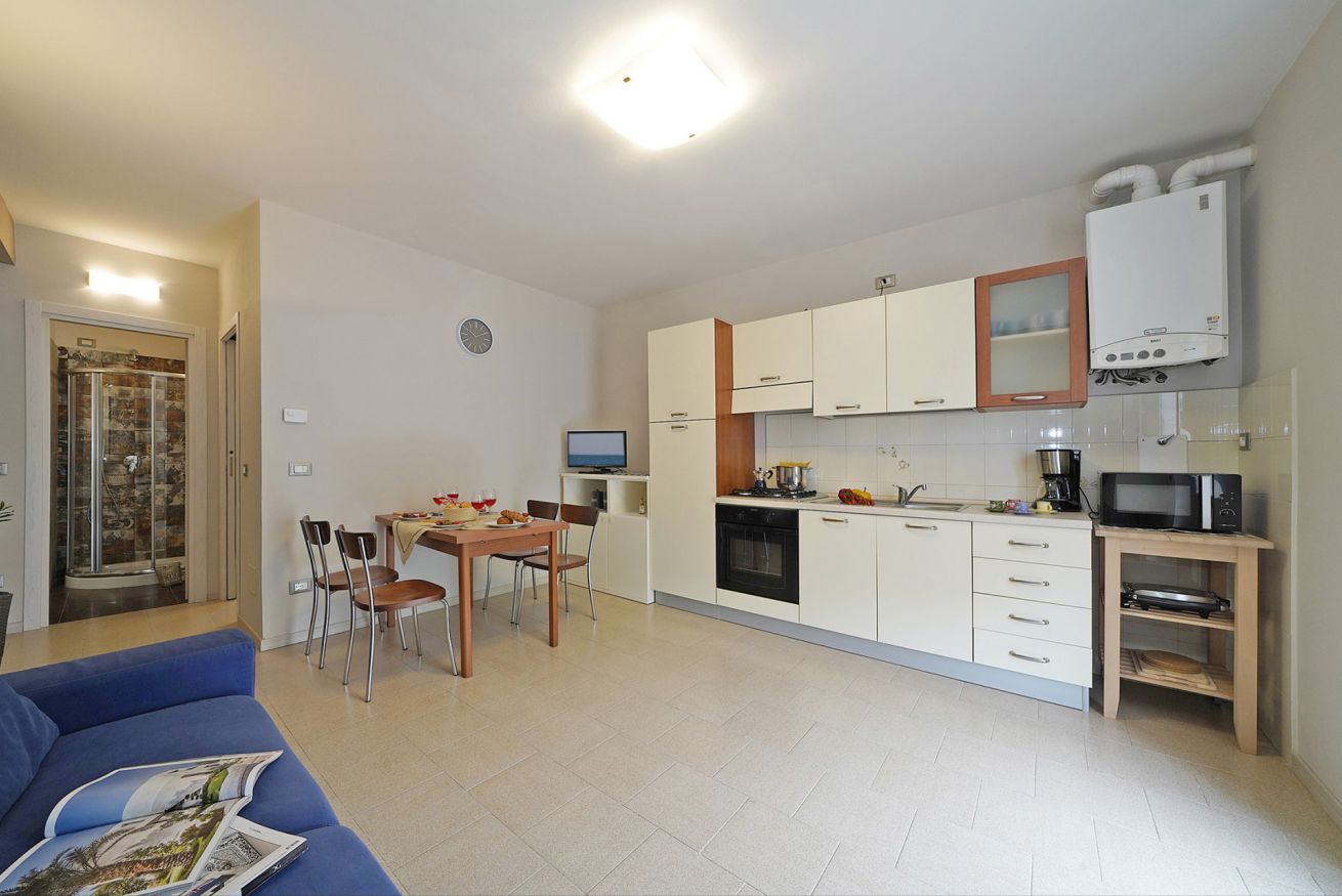 The apartment consists of a living room with sofa, TV and dining table, a kitchen equipped with oven, fridge and microwave, a double bedroom, a bathroom with shower and washing machine. The apartment is furnished with taste and care, equipped with independent heating and free Wi-Fi. It can accommodate up to 4 people and is ideal for families, couples or groups of friends who want to spend a holiday full of relaxation, fun and discovery.