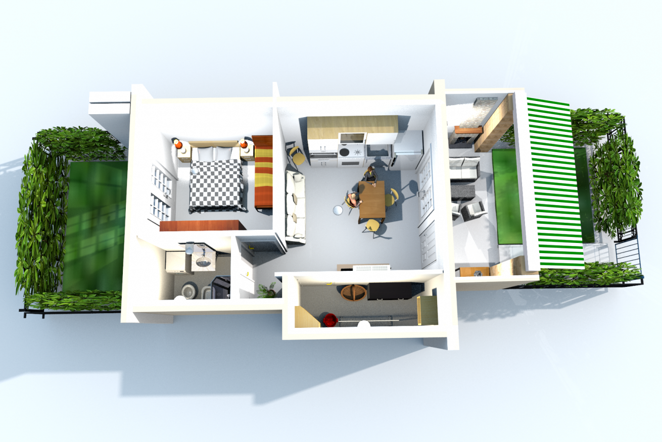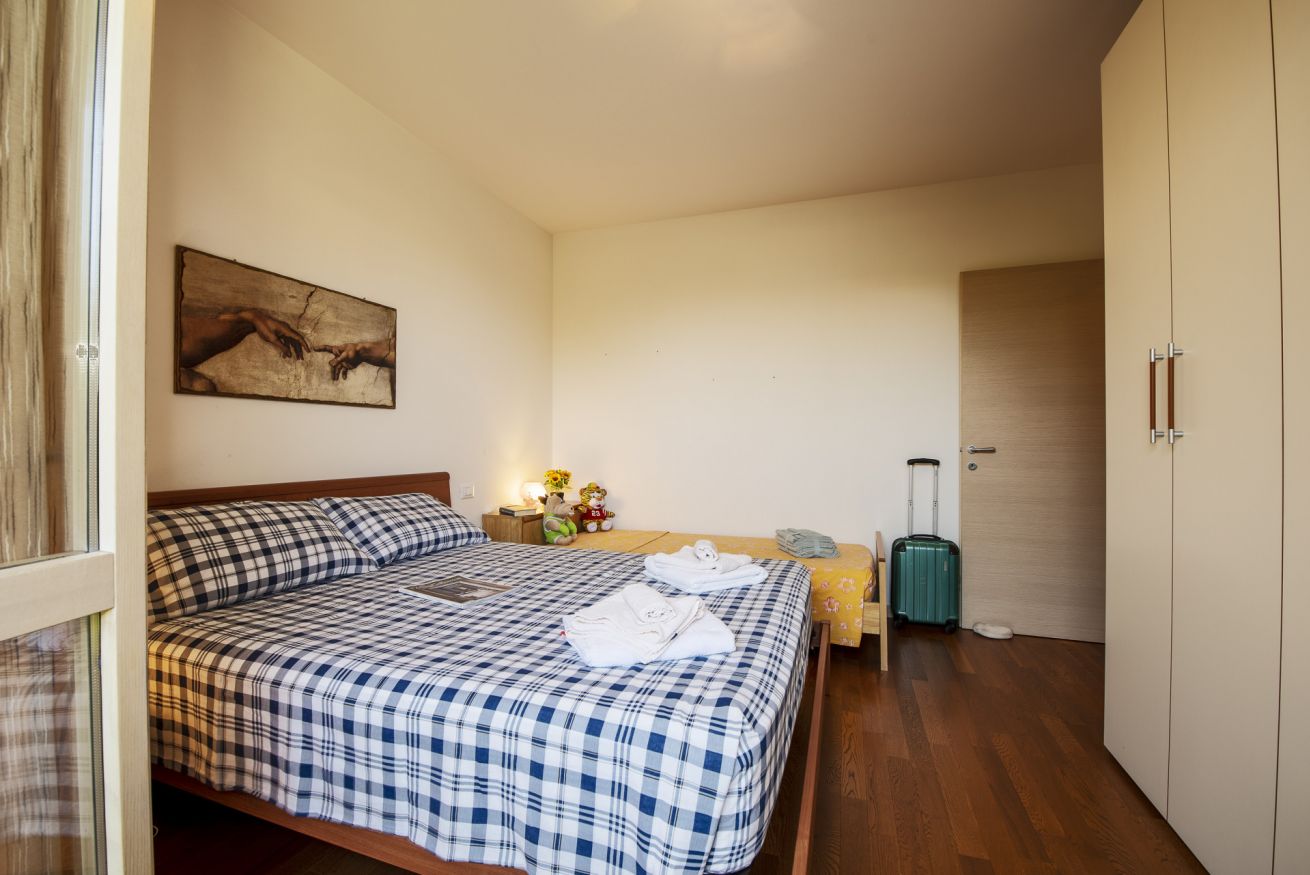 The apartment is perfectly equipped to accommodate four people. It has a bedroom with a double bed and a single bed, a sofa bed in the living room. The furnishings are modern and create a welcoming and relaxing atmosphere.