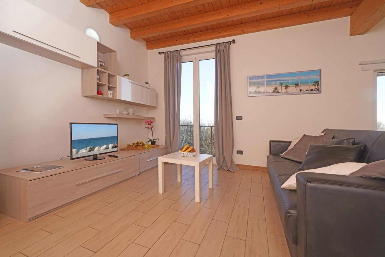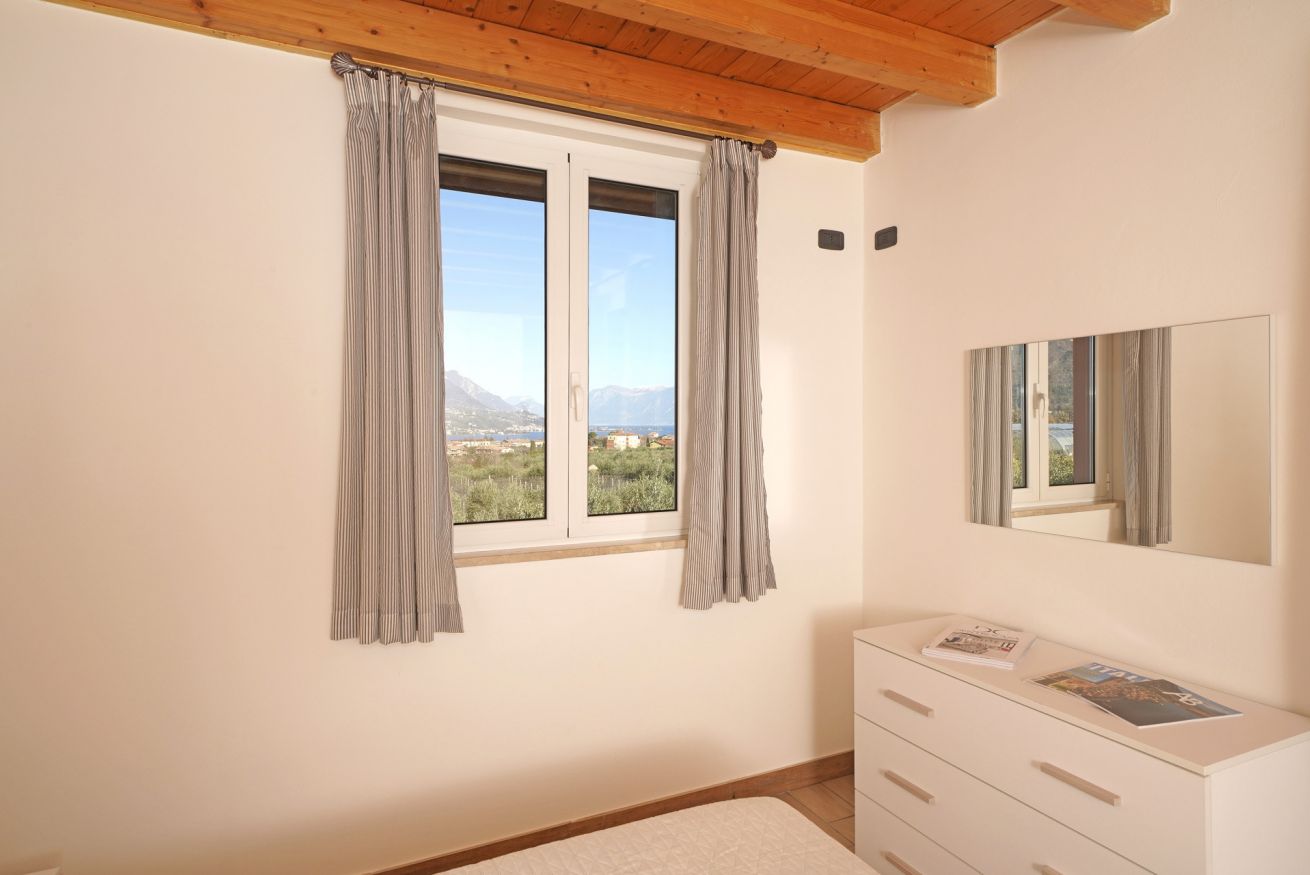 Upon your arrival, you will be greeted by a breathtaking view of the Lake Garda hinterland, surrounded by green hills and blue skies. The apartment is tastefully furnished, with all the modern comforts you would expect, with a large lounge and equipped kitchen, TV with international channels, two double bedrooms and a bunk bed. The location is ideal for those who love outdoor activities. You can take walks along the lake's paths, take a dip in the crystal clear waters or simply relax and enjoy the peace and tranquility of the landscape.