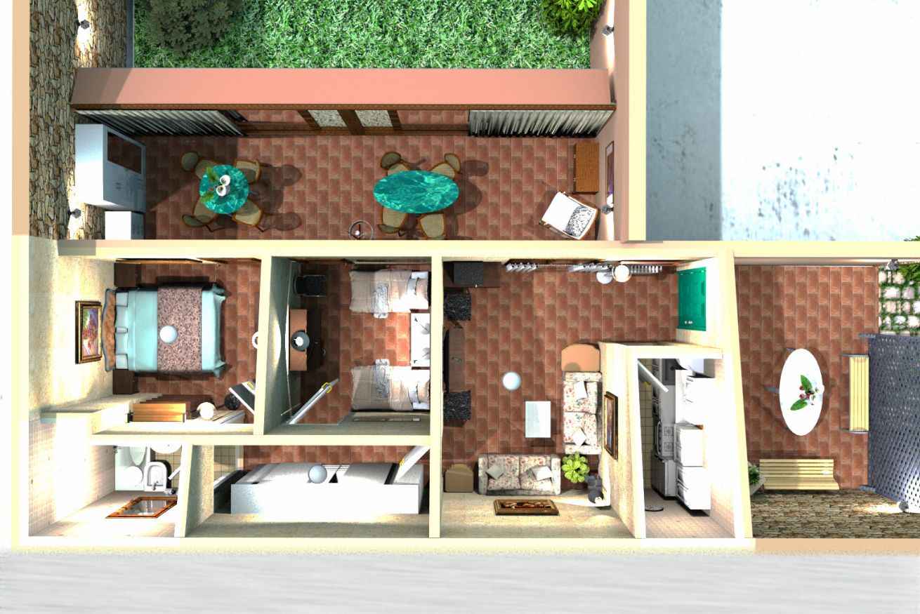 The house is equipped with all modern comforts to ensure a comfortable and relaxing stay. The interiors are tastefully furnished, combining traditional and modern elements to create a welcoming and familiar environment. with large living room and equipped kitchen, TV with international channels, a double bedroom and two single beds, air conditioning and large veranda overlooking the garden.