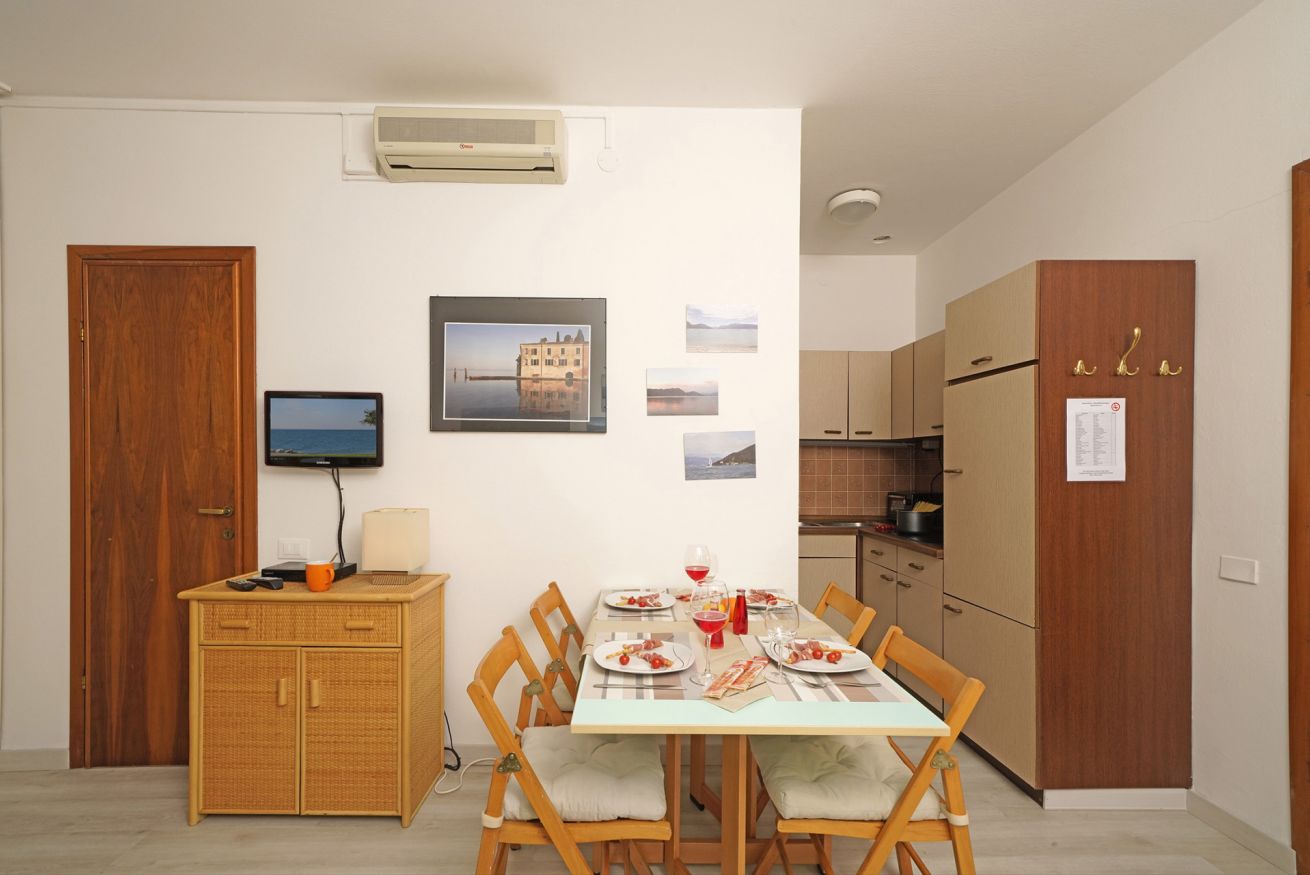 The apartment can comfortably accommodate three people, making it the ideal choice for couples or small families. It is tastefully furnished to ensure a comfortable and relaxing stay, including two sofa beds, the kitchen is equipped with induction, oven and refrigerator to prepare delicious Italian dishes, while the living room and large outdoor terrace is the perfect place to relax after a day spent exploring the beauty of the lake.