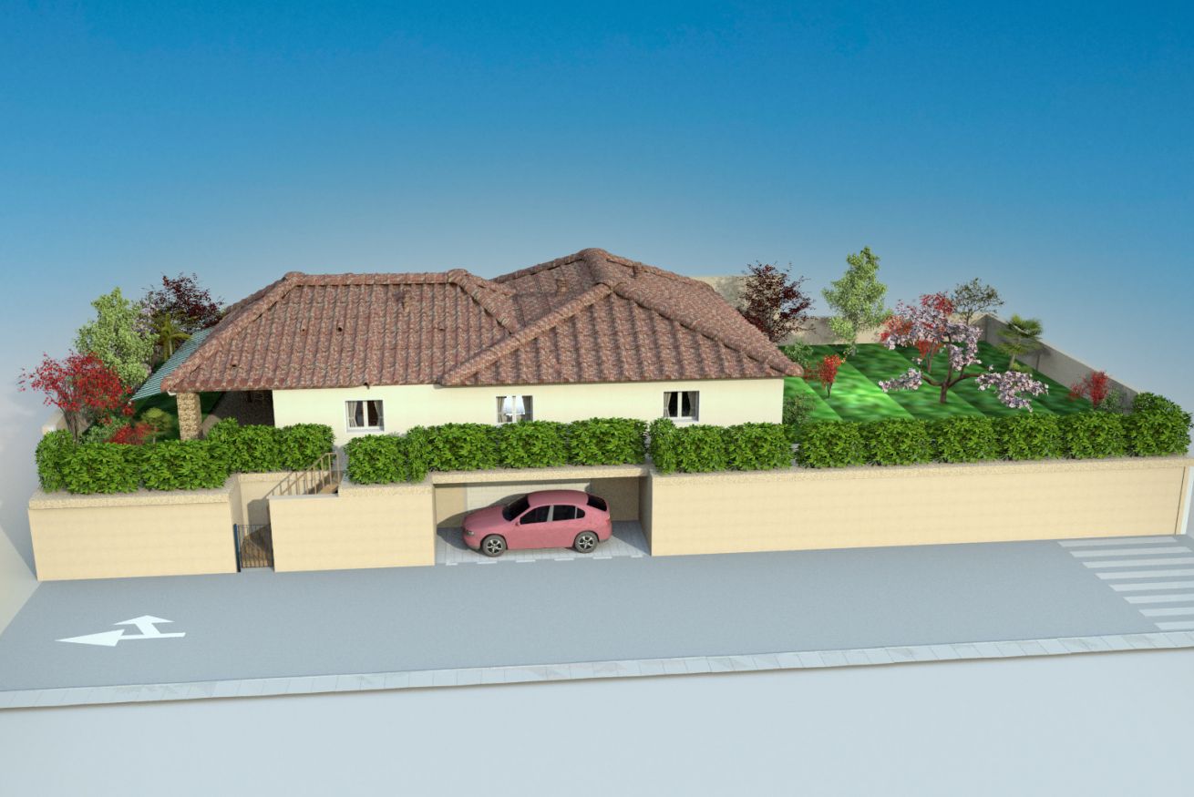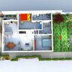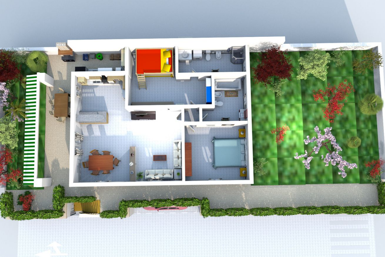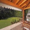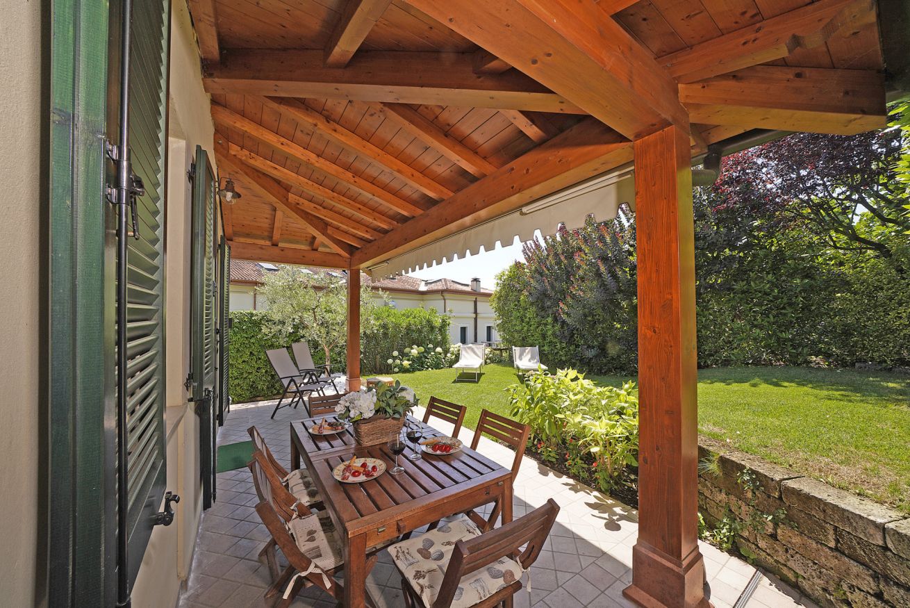 At the center of the villa, you will find a **large porch** which offers a covered outdoor space, perfect for relaxing or entertaining guests. The porch overlooks a lush garden, creating a quiet and serene atmosphere.