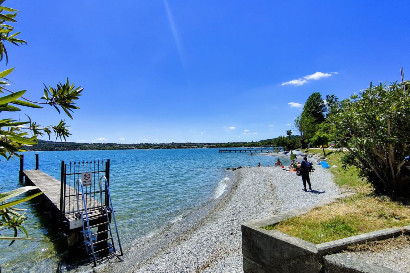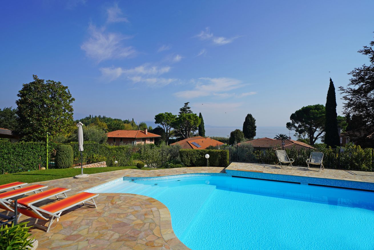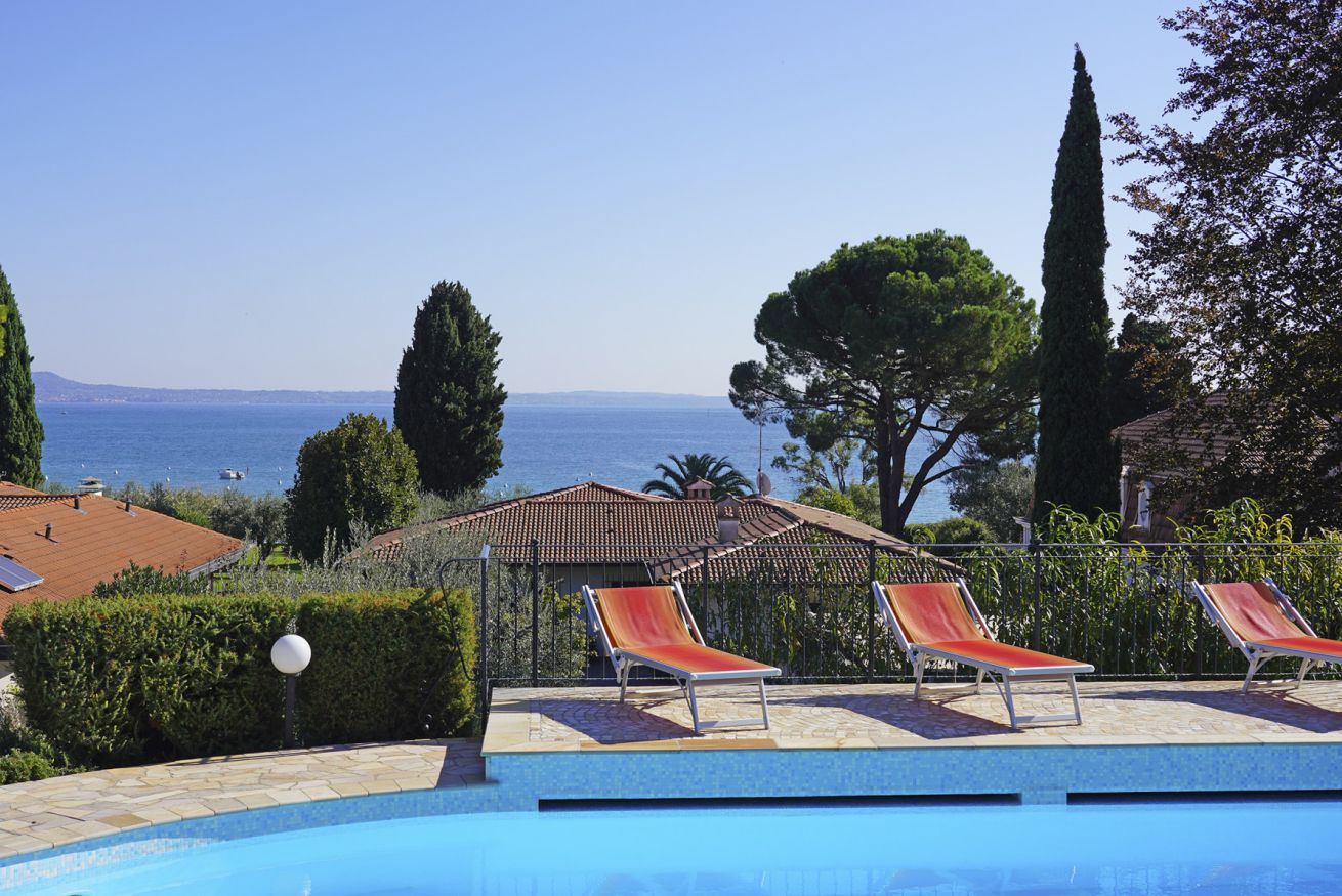 Immerse yourself in the tranquility of a large garden, enriched by the beauty of olive trees and bougainvillea. Enjoy the breathtaking view of the lake, a panorama that will accompany you during your stay.