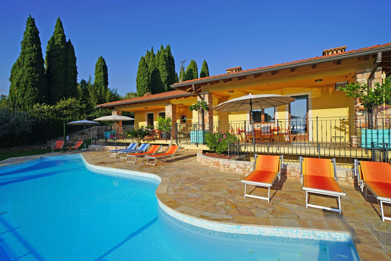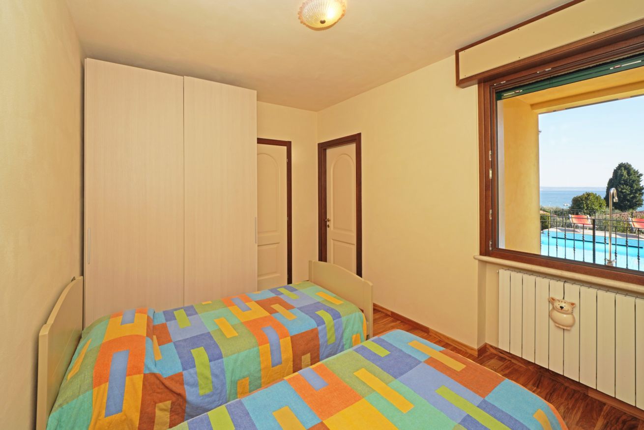 Immerse yourself in the tranquility of a large garden, enriched by the beauty of olive trees and bougainvillea. Enjoy the breathtaking view of the lake, a panorama that will accompany you during your stay.