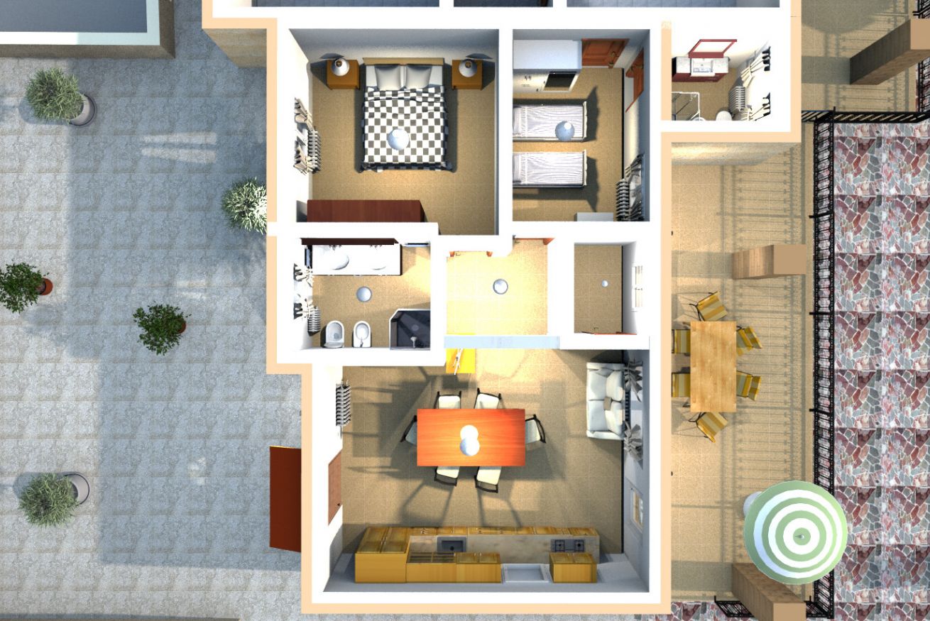 The apartment we present to you has a double bedroom and a bedroom with two single beds, ideal for families or groups of friends. The kitchen is fully equipped to meet all your culinary needs.